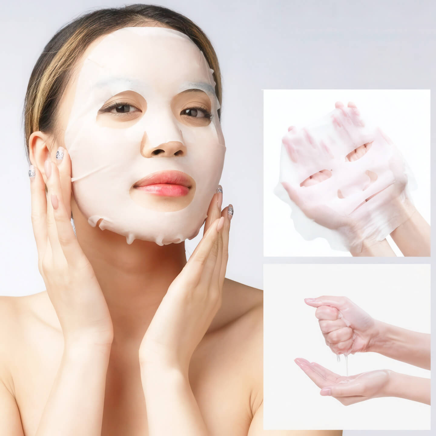 2. Apply the sheet mask evenly, adjusting around the eyes and mouth.
