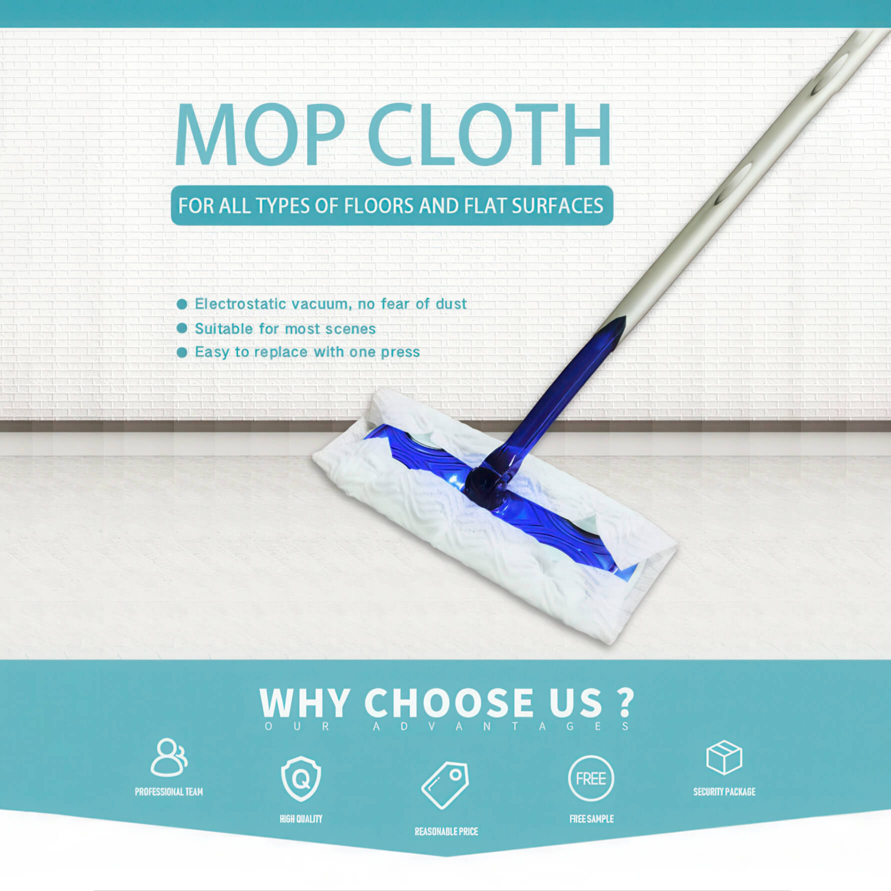 Keep your floors spotless with our high-quality disposable dry floor cloths, designed to fit most flat mops for quick and efficient cleaning. These mop pad replacements trap dust, dirt, and pet hair with ease, making them ideal for daily use in homes, offices, and commercial spaces.