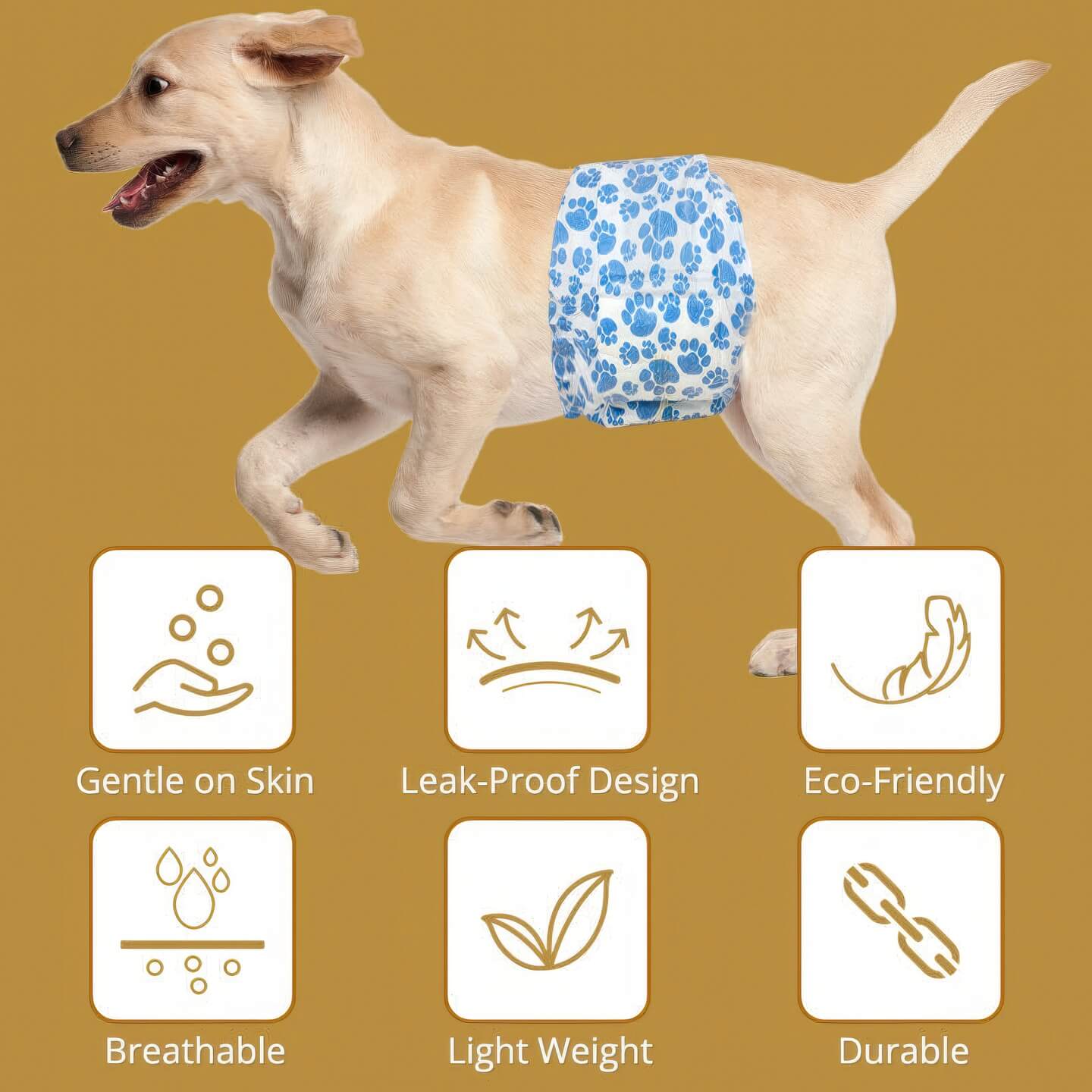 Secure & Adjustable Fit: Elastic waistband with magic sticker closure ensures a snug, comfortable fit for both male and female dogs.